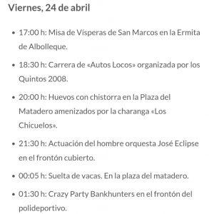 Observaciones: Suelta de vaquillas en la plaza del matadero.